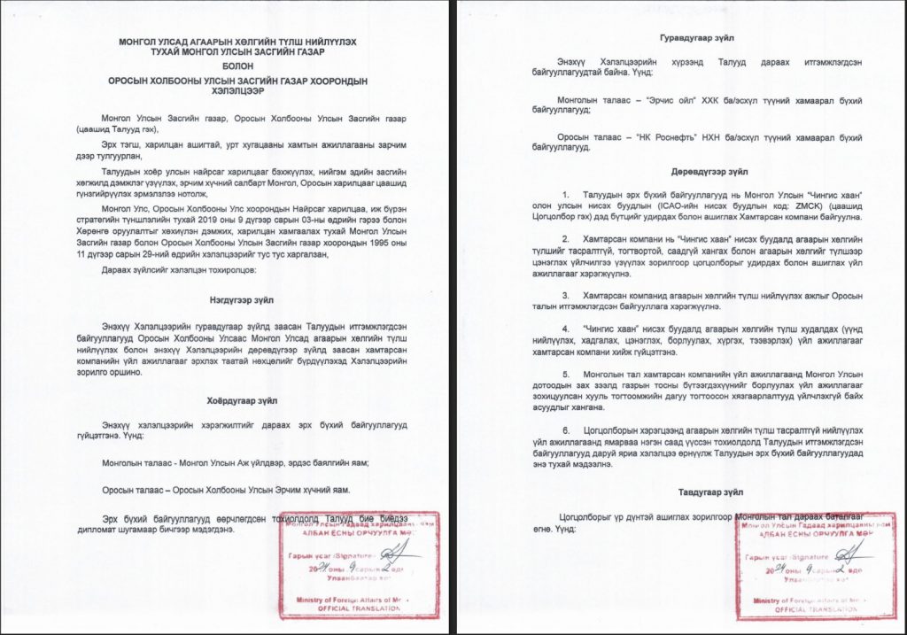 Танилц : ОХУ-тай 20 жилийн хугацаатай хамтарсан компани байгуулж, агаарын хөлгийн түлш нийлүүлэх тухай гэрээний онцлох заалтууд