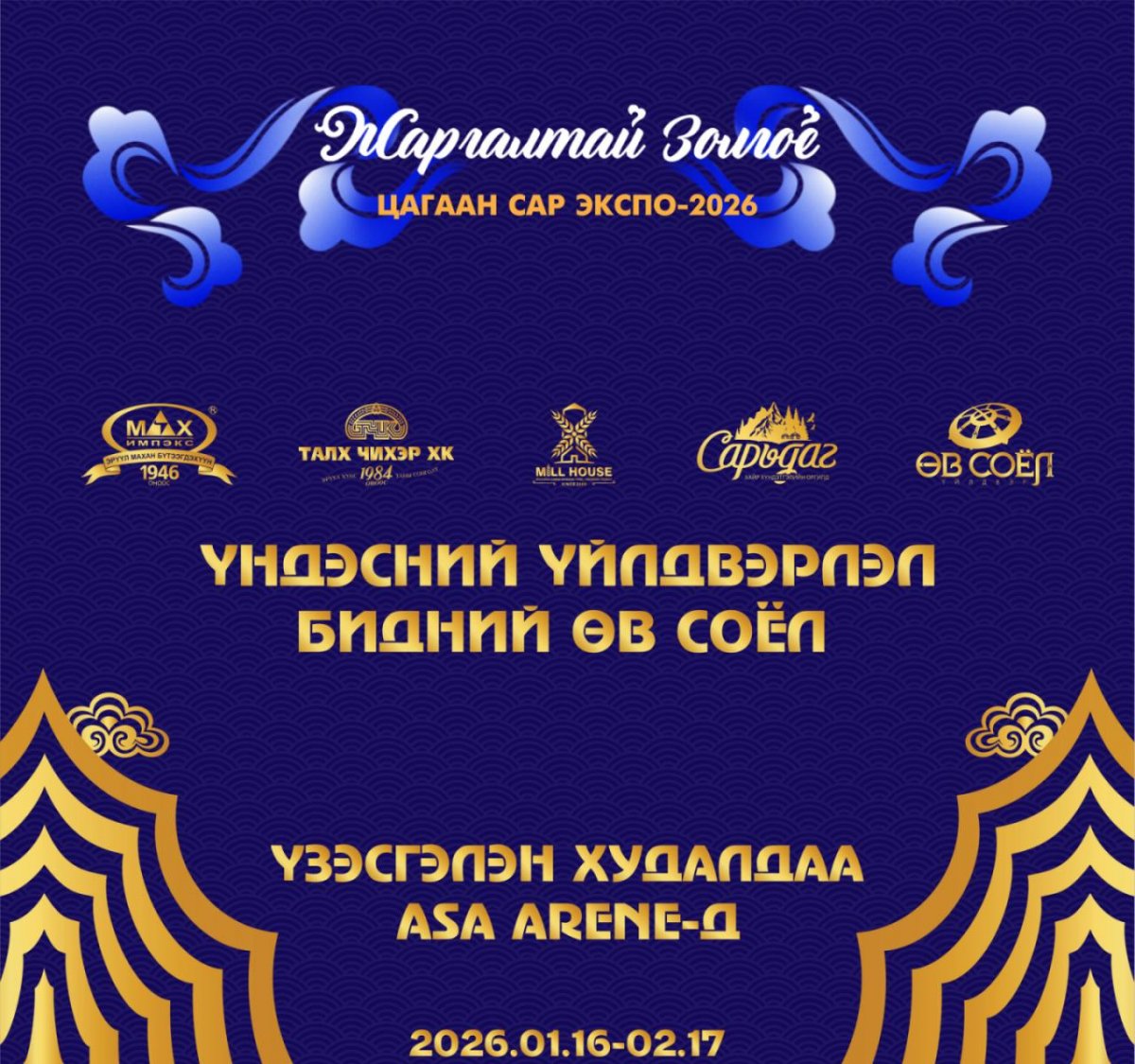 Үзэсгэлэн худалдаа “ASA  ARENA”-д 2026 оны 1 сарын 16-наас 2 сарын 17-ны өдөр хүртэл өдөр бүр үргэлжилнэ.