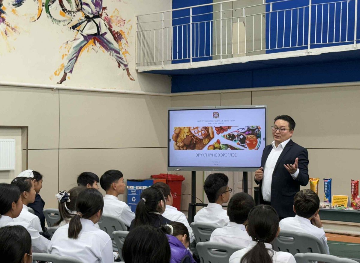 "Эрүүл зөв зохистой хооллолт, Эрүүл-хүнс хэрэглэе, Хүнсний бүтээгдэхүүнд тавигдах хаяг шошгын мэдээлэл" сэвдээр сурагчдад сургалт зохион байгуулжээ