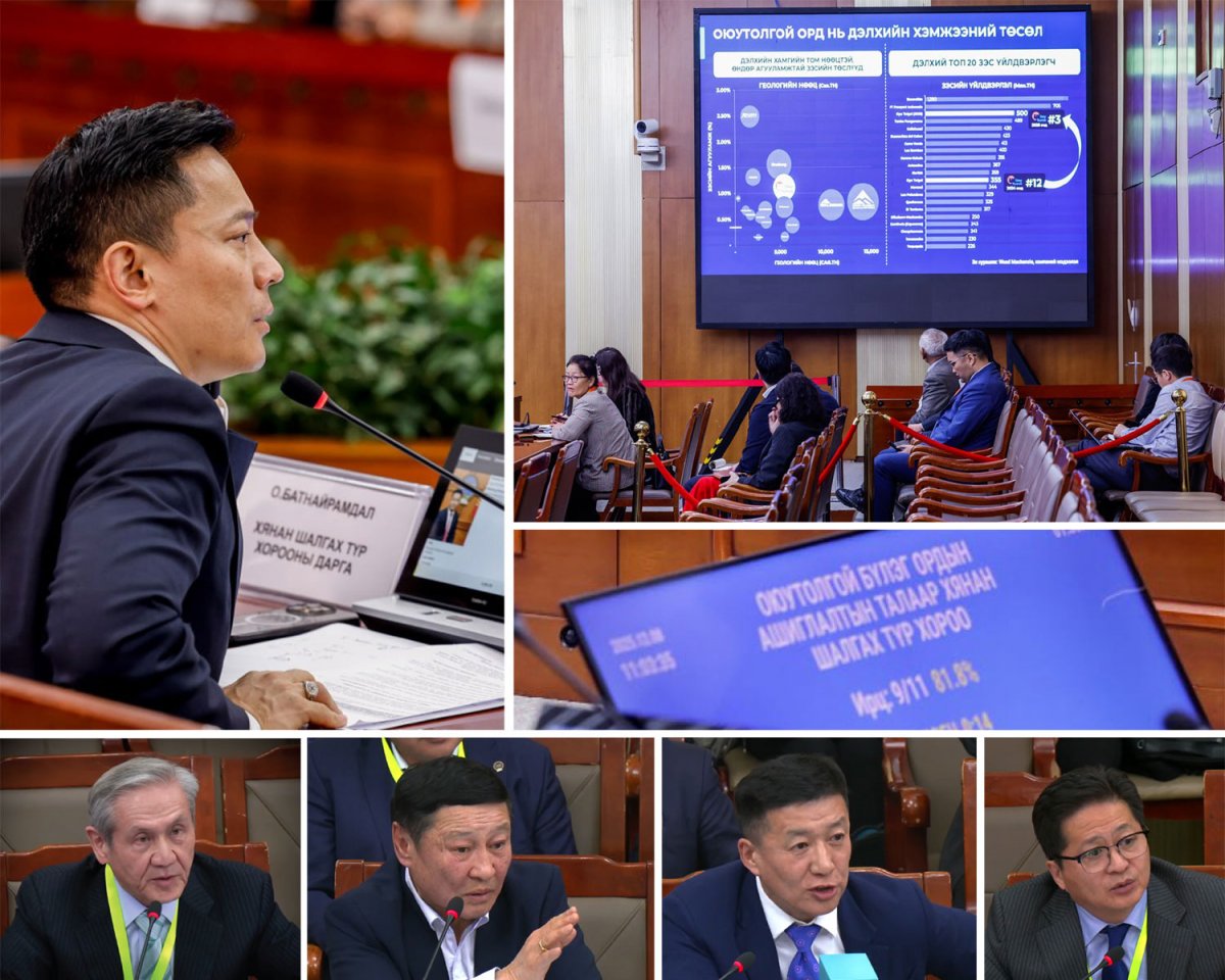 Өчигдрийн сонсголоор “Жавхлант” (MV-15225), “Шивээ толгой” (MV-15226) ашиглалтын тусгай зөвшөөрлийн талбайн нөөцийг тогтоож, үнэлгээг тодорхойлсон болон холбогдох бусад баримтад үндэслэн төрийн эзэмшлийн хувь, хэмжээг тогтоохтой холбоотой асуудлаар нотлох баримтуудыг шинжлэн судлав. Мөн 2025 оны арван хоёрдугаар сарын 10-ны өдөр “Оюу толгой” ХХК-ийн Хувь нийлүүлэгчдийн гэрээ /Нэмэлт, өөрчлөлт оруулж, дахин тодотгосон/-ний санхүүжилтийн хүүгийн хувь, түүнийг олон улсын зах зээлийн жишигт нийцүүлэн бууруулах талаар авч хэрэгжүүлсэн арга хэмжээ, холбогдох үр дагаврыг хэлэлцэв.
