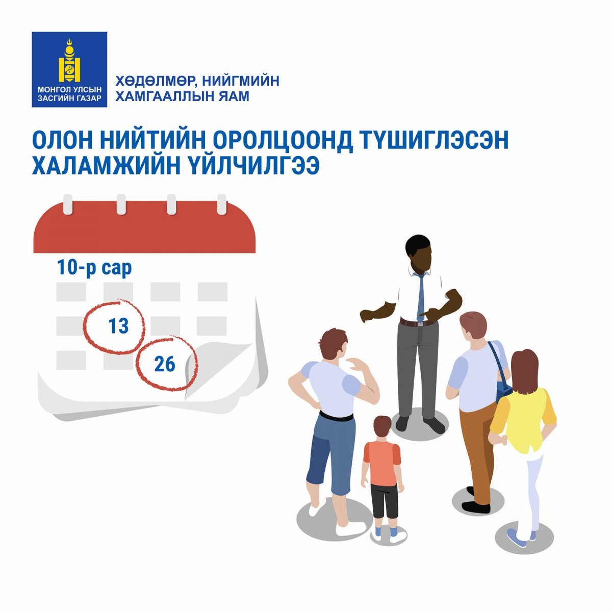 - нийгмийн халамжийн тэтгэврийг аравдугаар сарын 13, 26-нд,