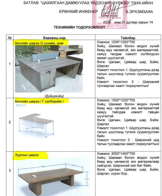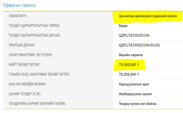 Төсвийг мөшгөе: "Цахилгаан дамжуулах үндэсний сүлжээ" ТӨХК 78 сая 308 мянга 40 төгрөгөөр оффисын тавилга худалдан авна